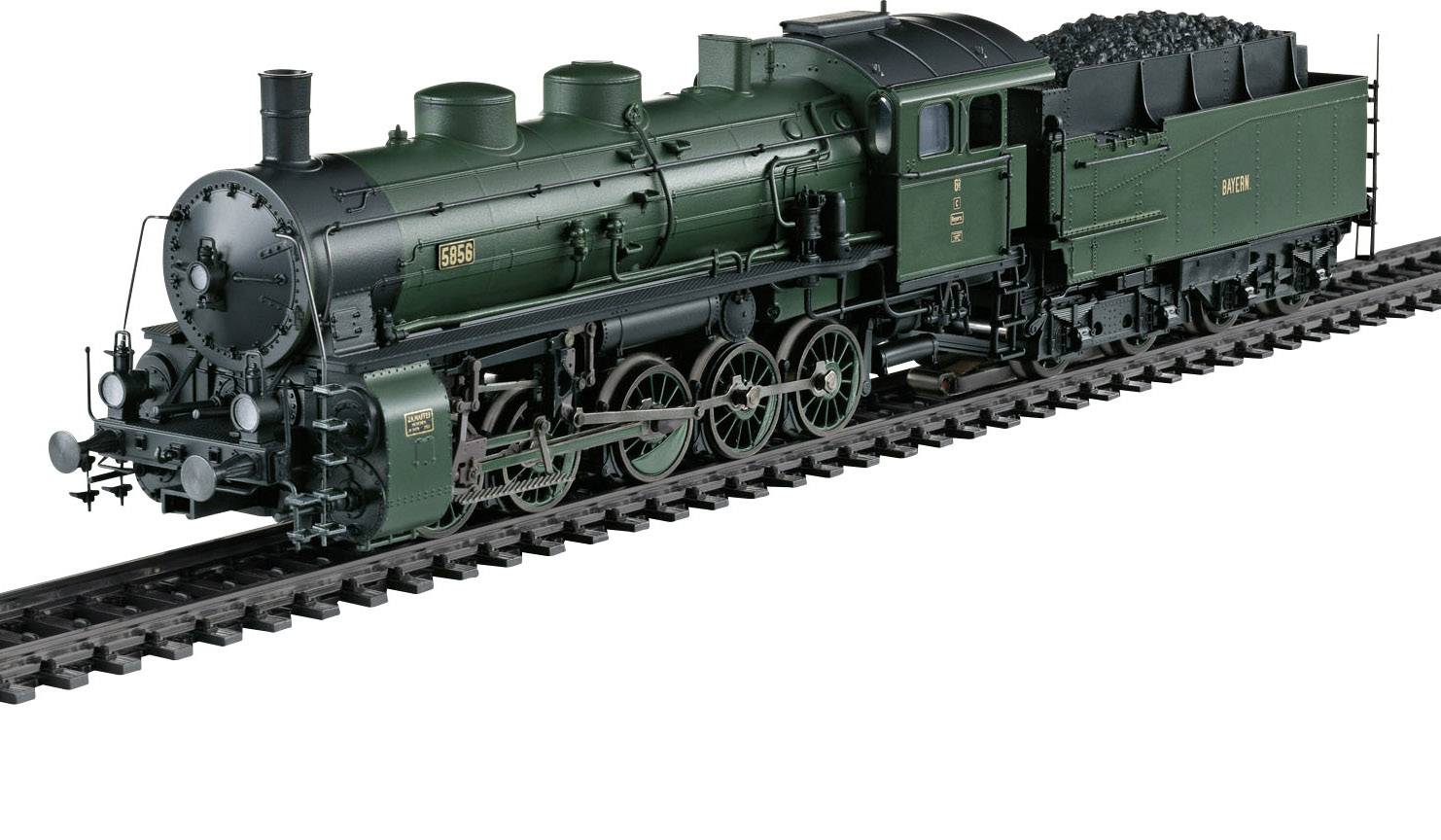 Schwere Güterzug-Dampflokomotive der bayerischen Gattung G 5/5, mit Schlepptender 2´2 T21,8. Bauart-Ausführung aus der dritten Lieferserie. Dunkelgrüne Grundfarbgebung der Gruppenverwaltung Bayern der Deutschen Reichsbahn. Betriebsnummer 5856. Betriebszustand um 1923.
