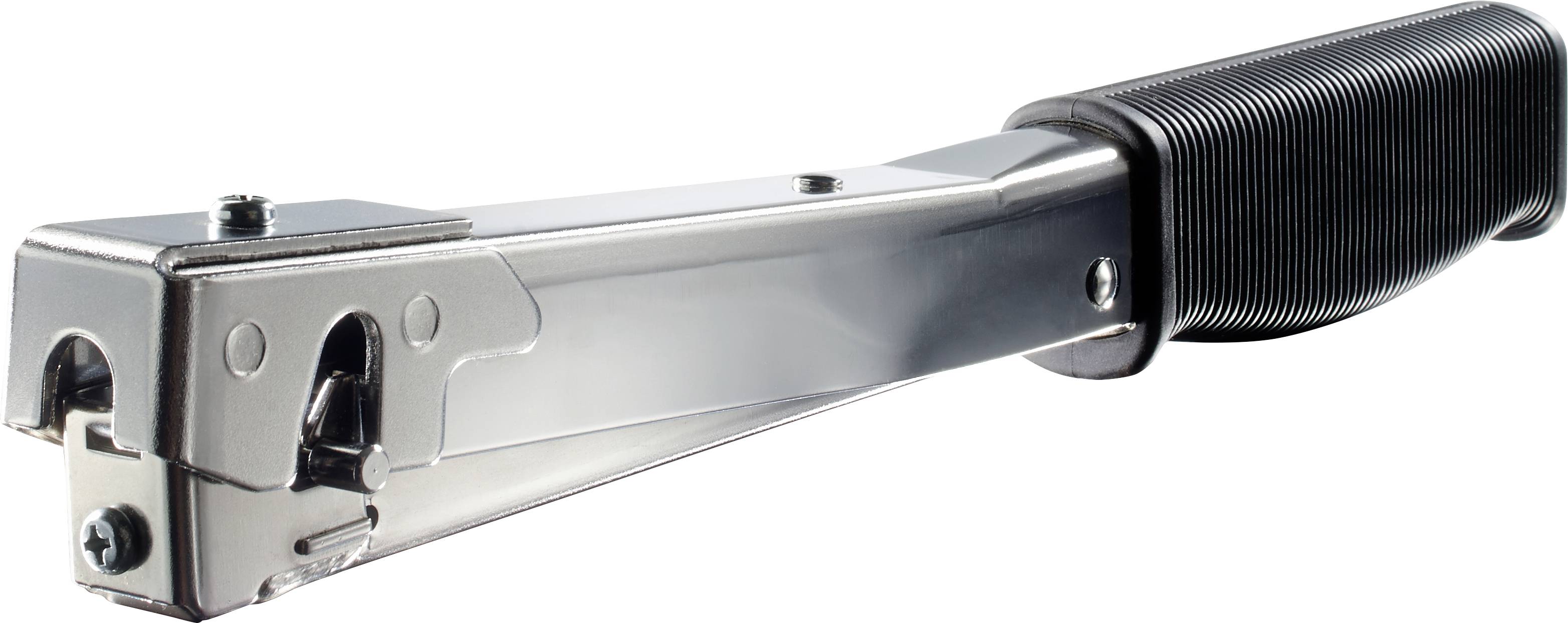 Kleiner Hammertacker für Feindrahtklammern bis 6 mm Länge. Die Oberlademechanik und die ergonomische Griffgestaltung ermöglichen eine einfache Handhabung für alle Arbeiten, bei denen es schnell gehen muss. Praktisch: Sämtliche Bestandteile der Oberlademechanik sind fest integriert, so dass nichts verloren gehen kann.