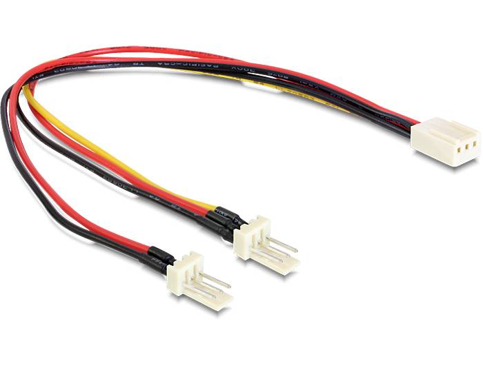 Dieses Molex Kabel von Delock dient zum Anschluss von zwei Lüftern mit Molex 3 Pin Schnittstelle an Ihr Mainboard. Es versorgt beide Lüfter mit Spannung und überträgt das Tachosignal für einen der beiden Lüfter.