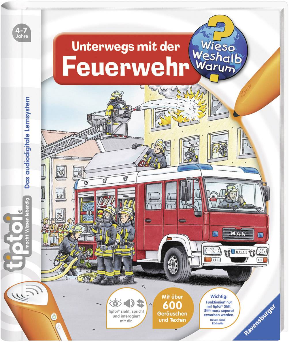 4005556005819, Ravensburger, 32905, tiptoi® Unterwegs mit der Feuerwehr, tiptoi, tip-toi, tip toi, spiel, spielen, familienspiel, gesellschaftsspiel, brettspiel, unterhaltsspiel, familien-spiel, gesellschafts-spiel, unterhaltungs-spiel, brett-spiel