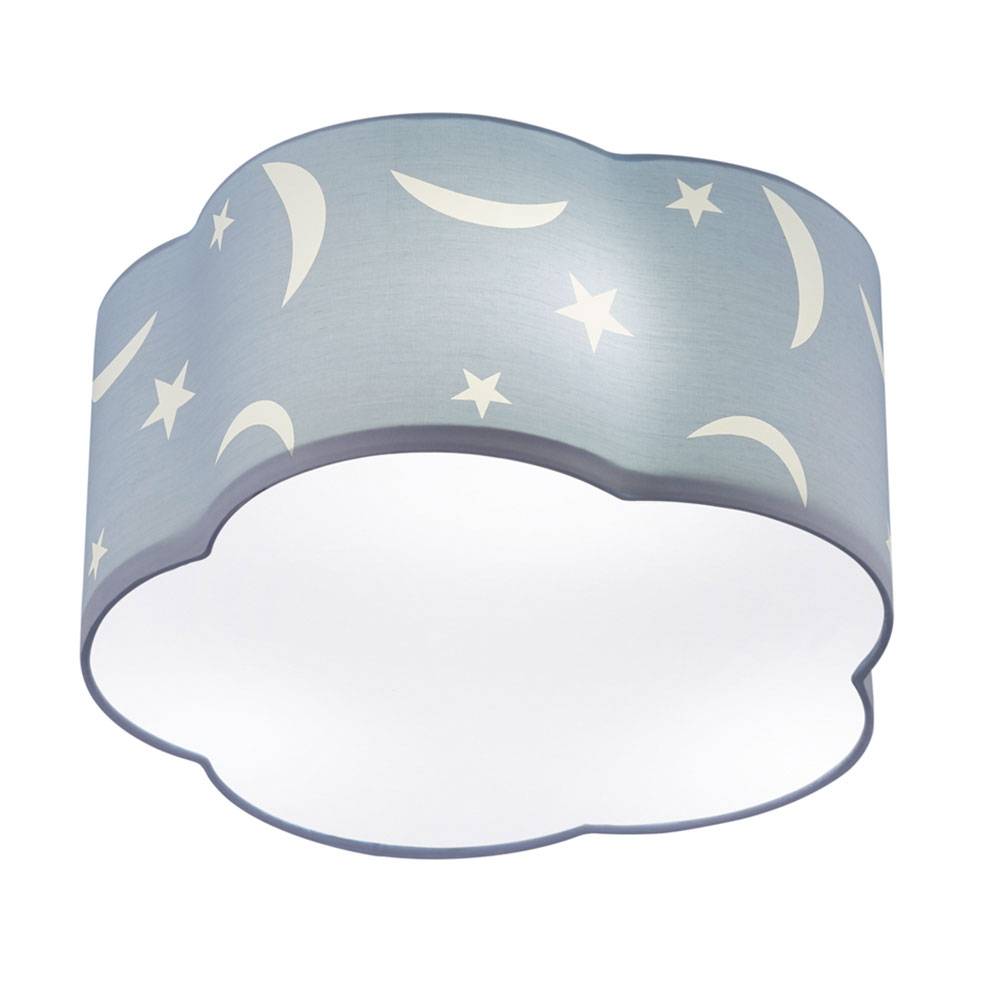 Die Deckenleuchte strahlt auf der einen Seite Gemütlichkeit aus und liefert auf der anderen Seite angenehm blendfreies Licht zum Spielen, Malen oder Basteln. Die Deckenleuchte hat die Form einer Wolke und wird durch einen Mix aus Sternen und Monden verziert, die beim Einschalten der Leuchte zu einem zauberhaften Blickfang werden. Diese Deckenlampe hat einen Durchmesser von 40cm und fügt sich damit in nahezu alle Raumgrößen ein. Sie ist in einem zarten pastellblau gestaltet und damit eine perfekte Ergänzung für ein verträumtes Kinderzimmer.