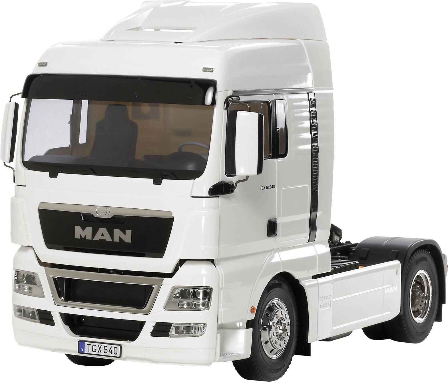 TAMIYA erweitert mit dem Facelift des MAN TGX 18.540 in der Euro 5 Version 2013 seine RC LKW-Serie um eine weitere deutsche 2-Achs-Zugmaschine. Auffällig ist der neue Kühlergrill mit dem großen MAN-Logo. Mit dem 458 mm langen und rund 3 kg schweren Bausatzmodell lassen sich beeindruckende Gespanne zusammenstellen. Unter dem nach vorne kippbaren Fahrerhaus findet sich die bewährte und robuste Tamiya-Trucktechnik. Ein kräftiger Elektromotor gibt über ein schaltbares 3-Gang-Schaltgetriebe seine Kraft an die Hinterachse ab. Ein detailgetreuer Aluminium-Leiterrahmen verleiht dem Modell die erforderliche Stabilität. Dank seines hohen Eigengewichts und einer Sattelplatte lässt sich der MAN TGX 18.540 mit zahlreichen TAMIYA und CARSON-MODEL SPORT Aufliegern koppeln. Mit der optional erhältlichen Multifunktionseinheit können nahezu alle Sound- und Lichtfunktionen des Vorbildes simuliert werden.