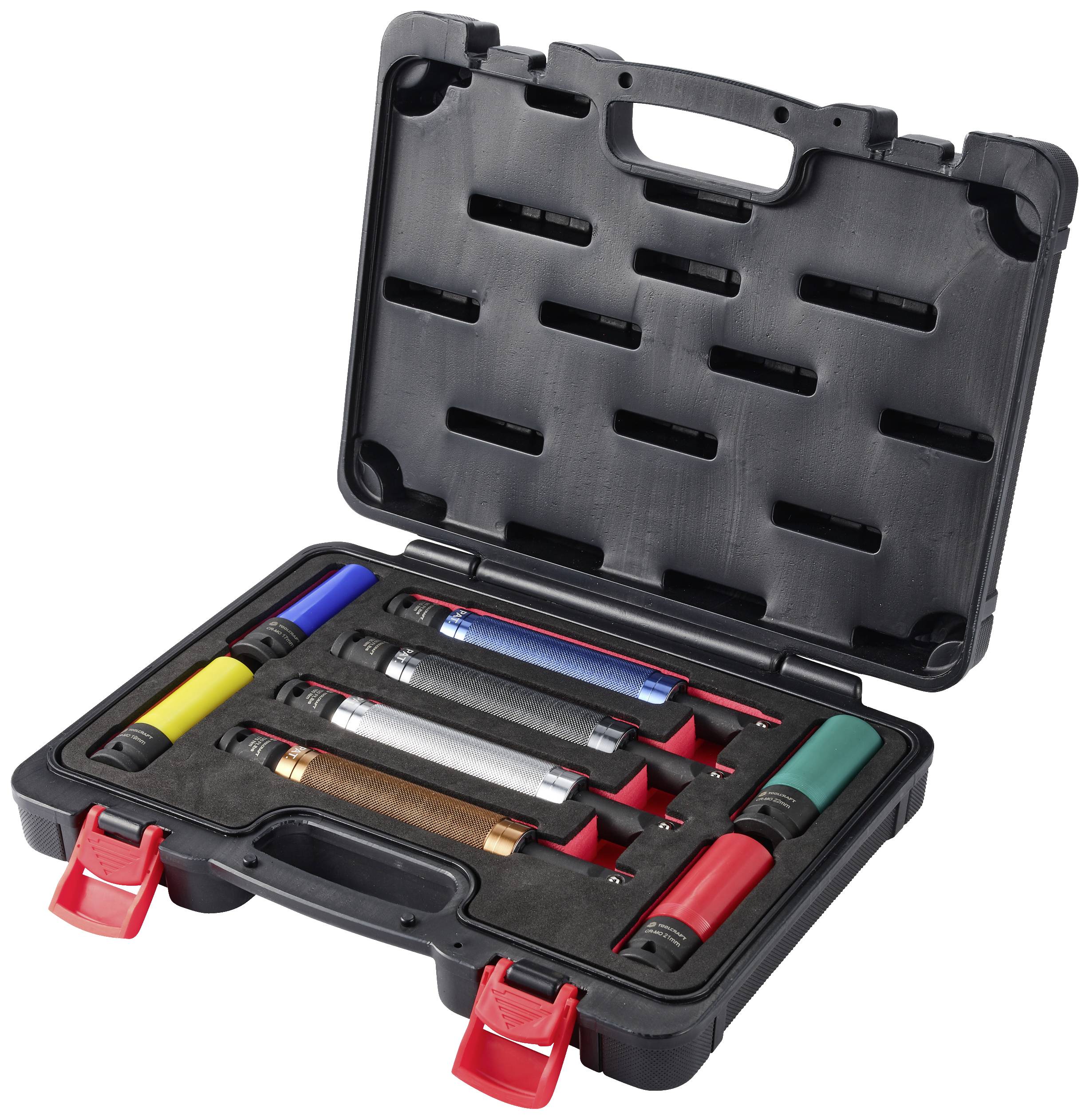 TOOLCRAFT Verlängerung mit Drehmomentbegrenzung verhindert das Überdrehen und den Bruch von Radmuttern und -bolzen. Die Auslieferung erfolgt in einer Aufbewahrungsbox in schwerer Ausführung mit Schaumstoffeinsätzen für Werkzeuge.