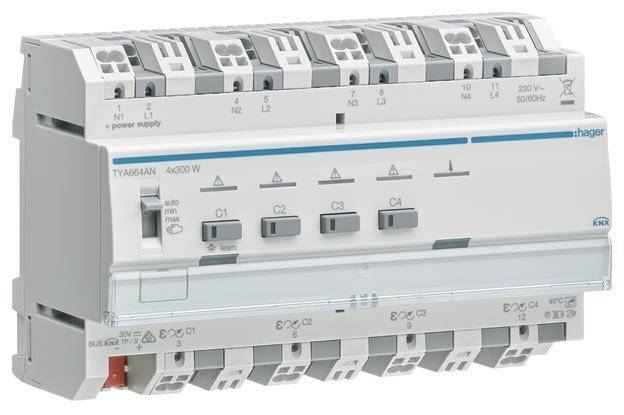 Universal-Dimmaktor 4-fach KNX, 4x300W, ESL/LED, kombinierbar. KNX Systembeschreibung Das KNX System ist ein flexibles, aufwärtskompatibles Installationsbussystem (früher EIB = European Installation Bus) für den Einsatz in der Gebäudesystemtechnik. Es ist speziell zugeschnitten auf besondere Anforderungen bezüglich des Komforts, der Möglichkeit zur flexiblen Raumnutzung, der Kombination von zentraler und dezentraler Steuerung, der intelligenten Verknüpfung von Gewerken und Systemen, Kommunikationsmöglichkeiten, Umweltverträglichkeit, der Energie- und Betriebskostenminimierung sowie der Funktionen Anzeigen, Melden, Bedienen, Überwachen und Detektieren. Durch seinen dezentralen Aufbau ermöglicht es in Wohn- und Zweckbauten, unabhängig von der Anlagengröße, ein gebäudespezifisches Betriebsmanagement. Besonders vorteilhaft wirkt sich die Verwendbarkeit von handelsüblichen Stromkreisverteilern und Installationsdosen aus. Alle Busteilnehmer werden über eine den KNX-Richtlinien (Konnex Association) entsprechende Busleitung (z.B. J-Y(St)Y 2x2x0,8) verbunden. Da die Busleitung, nach DIN VDE 0100, direkt neben Starkstromleitungen verlegt werden darf, wird die Leitungsführung stark vereinfacht. Gegenüber öffentlichen Fernmeldeanlagen ist die Busanlage mit allen Komponenten wie eine Starkstromanlage zu behandeln. Wie bei der Starkstrominstallation darf die Leitungsführung linien-, stern- bzw. baumförmig ausgeführt werden. Eine Kombination der verschiedenen Leitungsführungen ist grundsätzlich erlaubt. Die Verdrahtung erfolgt in Zweidraht-Technik, wobei die Adern mit den Farben rot (für "+") und schwarz (für "-") die Vorzugsadern darstellen. Die Adern mit den Farben weiß und gelb dienen als Reserve. Über die Busleitung werden die Teilnehmer mit der Busspannung (Schutzkleinspannung SELV 30 V DC) versorgt. Gleichzeitig dient sie zur Übertragung der Informationen, die zwischen den Busteilnehmern ausgetauscht werden. Ein Abschlusswiderstand wird für die Busleitung nicht benötigt. Die