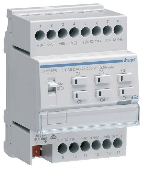 Heizungsaktor 6fach KNX easy, mit Regler für 24/230V Stellantriebe, Triac. KNX Systembeschreibung Das KNX System ist ein flexibles, aufwärtskompatibles Installationsbussystem (früher EIB = European Installation Bus) für den Einsatz in der Gebäudesystemtechnik. Es ist speziell zugeschnitten auf besondere Anforderungen bezüglich des Komforts, der Möglichkeit zur flexiblen Raumnutzung, der Kombination von zentraler und dezentraler Steuerung, der intelligenten Verknüpfung von Gewerken und Systemen, Kommunikationsmöglichkeiten, Umweltverträglichkeit, der Energie- und Betriebskostenminimierung sowie der Funktionen Anzeigen, Melden, Bedienen, Überwachen und Detektieren. Durch seinen dezentralen Aufbau ermöglicht es in Wohn- und Zweckbauten, unabhängig von der Anlagengröße, ein gebäudespezifisches Betriebsmanagement. Besonders vorteilhaft wirkt sich die Verwendbarkeit von handelsüblichen Stromkreisverteilern und Installationsdosen aus. Alle Busteilnehmer werden über eine den KNX-Richtlinien (Konnex Association) entsprechende Busleitung (z.B. J-Y(St)Y 2x2x0,8) verbunden. Da die Busleitung, nach DIN VDE 0100, direkt neben Starkstromleitungen verlegt werden darf, wird die Leitungsführung stark vereinfacht. Gegenüber öffentlichen Fernmeldeanlagen ist die Busanlage mit allen Komponenten wie eine Starkstromanlage zu behandeln. Wie bei der Starkstrominstallation darf die Leitungsführung linien-, stern- bzw. baumförmig ausgeführt werden. Eine Kombination der verschiedenen Leitungsführungen ist grundsätzlich erlaubt. Die Verdrahtung erfolgt in Zweidraht-Technik, wobei die Adern mit den Farben rot (für "+") und schwarz (für "-") die Vorzugsadern darstellen. Die Adern mit den Farben weiß und gelb dienen als Reserve. Über die Busleitung werden die Teilnehmer mit der Busspannung (Schutzkleinspannung SELV 30 V DC) versorgt. Gleichzeitig dient sie zur Übertragung der Informationen, die zwischen den Busteilnehmern ausgetauscht werden. Ein Abschlusswiderstand wird für die Busleitung nicht b