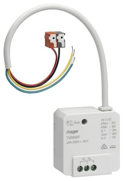 Schalt-/Jalousieaktor 2/1-fach + 2 Eingänge KNX easy, 6A, UP. KNX Systembeschreibung Das KNX System ist ein flexibles, aufwärtskompatibles Installationsbussystem (früher EIB = European Installation Bus) für den Einsatz in der Gebäudesystemtechnik. Es ist speziell zugeschnitten auf besondere Anforderungen bezüglich des Komforts, der Möglichkeit zur flexiblen Raumnutzung, der Kombination von zentraler und dezentraler Steuerung, der intelligenten Verknüpfung von Gewerken und Systemen, Kommunikationsmöglichkeiten, Umweltverträglichkeit, der Energie- und Betriebskostenminimierung sowie der Funktionen Anzeigen, Melden, Bedienen, Überwachen und Detektieren. Durch seinen dezentralen Aufbau ermöglicht es in Wohn- und Zweckbauten, unabhängig von der Anlagengröße, ein gebäudespezifisches Betriebsmanagement. Besonders vorteilhaft wirkt sich die Verwendbarkeit von handelsüblichen Stromkreisverteilern und Installationsdosen aus. Alle Busteilnehmer werden über eine den KNX-Richtlinien (Konnex Association) entsprechende Busleitung (z.B. J-Y(St)Y 2x2x0,8) verbunden. Da die Busleitung, nach DIN VDE 0100, direkt neben Starkstromleitungen verlegt werden darf, wird die Leitungsführung stark vereinfacht. Gegenüber öffentlichen Fernmeldeanlagen ist die Busanlage mit allen Komponenten wie eine Starkstromanlage zu behandeln. Wie bei der Starkstrominstallation darf die Leitungsführung linien-, stern- bzw. baumförmig ausgeführt werden. Eine Kombination der verschiedenen Leitungsführungen ist grundsätzlich erlaubt. Die Verdrahtung erfolgt in Zweidraht-Technik, wobei die Adern mit den Farben rot (für "+") und schwarz (für "-") die Vorzugsadern darstellen. Die Adern mit den Farben weiß und gelb dienen als Reserve. Über die Busleitung werden die Teilnehmer mit der Busspannung (Schutzkleinspannung SELV 30 V DC) versorgt. Gleichzeitig dient sie zur Übertragung der Informationen, die zwischen den Busteilnehmern ausgetauscht werden. Ein Abschlusswiderstand wird für die Busleitung nicht benötigt. Die