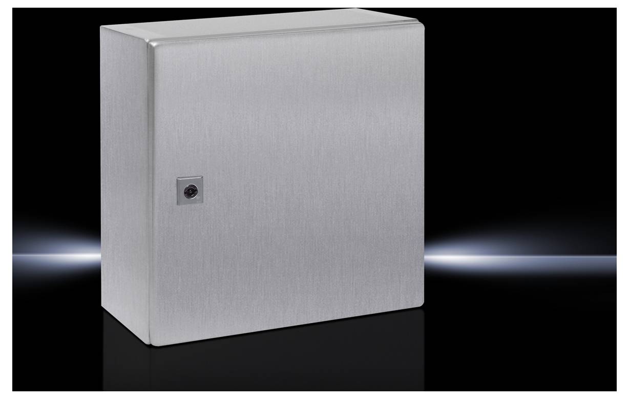AE Kompakt-Schaltschrank, BHT: 380x380x210 mm, Edelstahl, 1.4301, mit Montageplatte, eintürig, ein Vorreiberverschluss