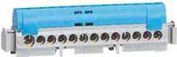 Legrand Klemmenleiste IP 20, berührungssicher, blau, für Schienenmontage (Schiene 12 x 2 mm) bzw. Verteilermontage, Kennzeichnung z.B. mit Duplix, Eingang: -- x 6 bis 25 mm², Abgang: 8 x 1,5 bis 16 mm², Länge: 75 mm, max. 100 A/400 VAC bei 25 mm² Eingang, max. 80 A /400 VAC bei 16 mm² Eingang, nach IEC 60998-2-1.