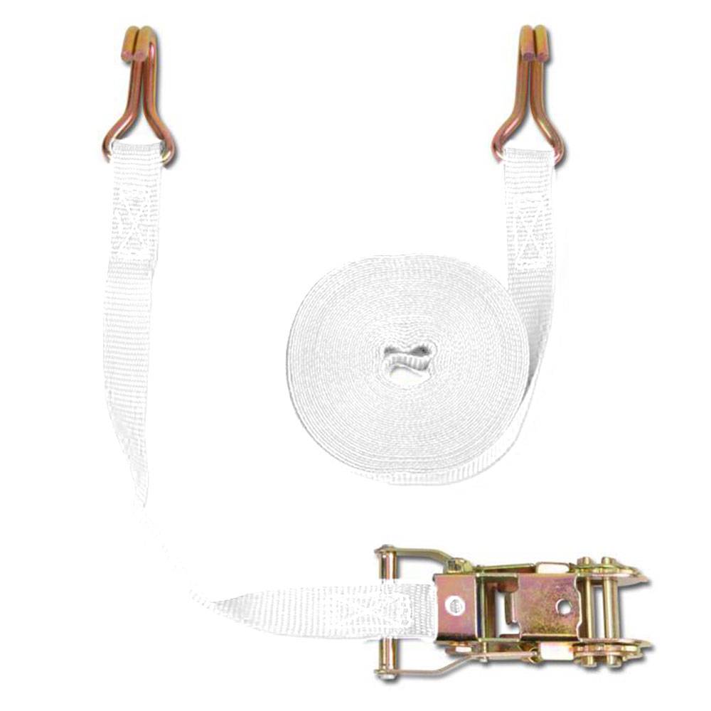 Einsatzbereich Der Spanngurt und Zurrgurt ist ideal geeignet zum Verzurren und Sichern von Ladungen im Straßen-, Schienen-, Flug- und Schiffsverkehr. Beschreibung Der Spanngurt ist nach DIN EN 12195-2 mit GS Prüfsiegel gefertigt. Er hat beidseitig einen Haken und eine Ratsche zum Festziehen. Für eine höhere Lebensdauer ist der Gurt verrottungsbeständig. Das weiche Material schont die Oberfläche der Ladung. Technische Daten Zulässige Zugkraft im geraden Zug - 500 daN (kg) Zulässige Zugkraft in der Umreifung - 1000 daN (kg) Bandmaterial - Polyestergewebe Temperaturbeständig - von -40 bis 120°C Bandbreite - 25 mm Farbe - verschiedene Länge Vorläufer (Haken, Band, Ratsche) - 50 cm standardmäßig Bedruckung - Maximal 30 Zeichen Andere passende Haken - Zu diesem System passende Haken sind im Pdf-Datenblatt aufgeführt, bitte geben Sie die Nummer bei Anfragen/Bestellungen mit an.