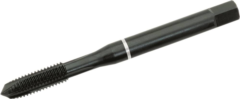 Hinweise: Steigung = P.Anwendung: Für Durchgangslochgewinde, stabile Ausführung mit starkem Kern und schmalen Ölnuten, für höchste Anforderungen, besonders für Durchgangsgewinde in langspanenden VA-Werkstoffen bis 1.000 N/mm² Festigkeit, hochlegierte CI-Stähle.Eigenschaften: Weißring, metrisches ISO-Gewinde DIN 13. M 3 bis M 10 DIN 371, ab M 12 DIN 376, Toleranzfeld ISO 2 - 6 H, Anschnittform B, Schälanschnitt (Späne werden in Schneidrichtung abgeführt), Flanken geschliffen und hinterschliffen. Besondere Schneidengeometrie; vaporisierte Oberfläche.Vorteile: - ideal für VA-Werkstoffe bis 1.000 N/mm² Festigkeit, hochlegierte CI-Stähle und schwer zerspanbare Werkstoffe- vaporosierte Oberfläche.