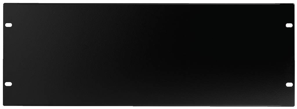 482-mm-Rackblenden (19") geschlossen aus 1,5 mm Stahl, schwarz kunststoffbeschichtet.