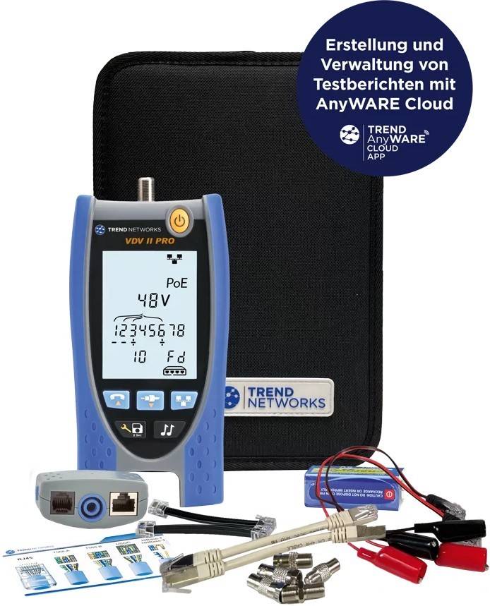 Der TREND Networks Verdrahtungstester VDV II Pro BT ist ein unverzichtbares Werkzeug für alle, die in der modernen Kommunikationstechnik arbeiten. Dieser Tester bietet eine schnelle und präzise Überprüfung von Verkabelungen, Identifikation von Fehlern und Bestimmung der Kabellänge. Dank der integrierten Bluetooth-Funktion können Daten bequem auf mobile Geräte übertragen und Berichte erstellt werden, was den Dokumentations- und Austauschprozess erheblich vereinfacht. Ideal für Installateure und Netzwerktechniker, bietet der VDV II Pro BT die Möglichkeit, verschiedene Kabeltypen wie Cat 5e, Cat 6 und Cat 6A zu testen und Verbindungen automatisch zu erkennen. Er zeichnet sich durch seine robuste Verarbeitung und einfache Bedienbarkeit aus, wodurch auch intensive Nutzung problemlos möglich ist. Mit dem TREND Networks Verdrahtungstester VDV II Pro BT steigern Sie Ihre Produktivität und erzielen zuverlässige Ergebnisse bei jeder Verkabelungsprüfung. Erleben Sie die Effizienz eines qualitativ hochwertigen Testers, der Ihnen bei der Arbeit noch mehr Freude bereiten wird.ㅤ