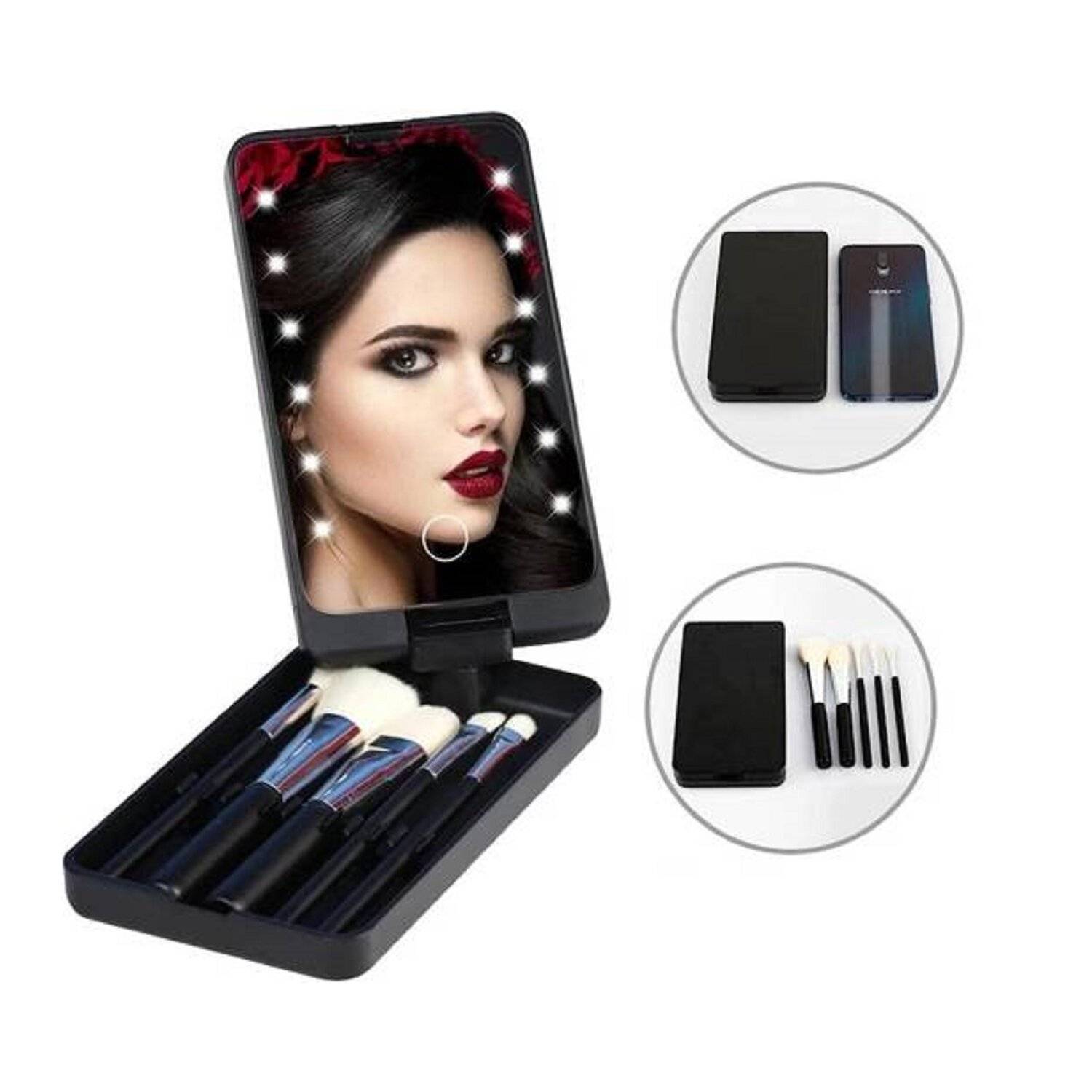 Kosmetischer LED-Schminkspiegel + 5 Make-up-Pinsel schwarz