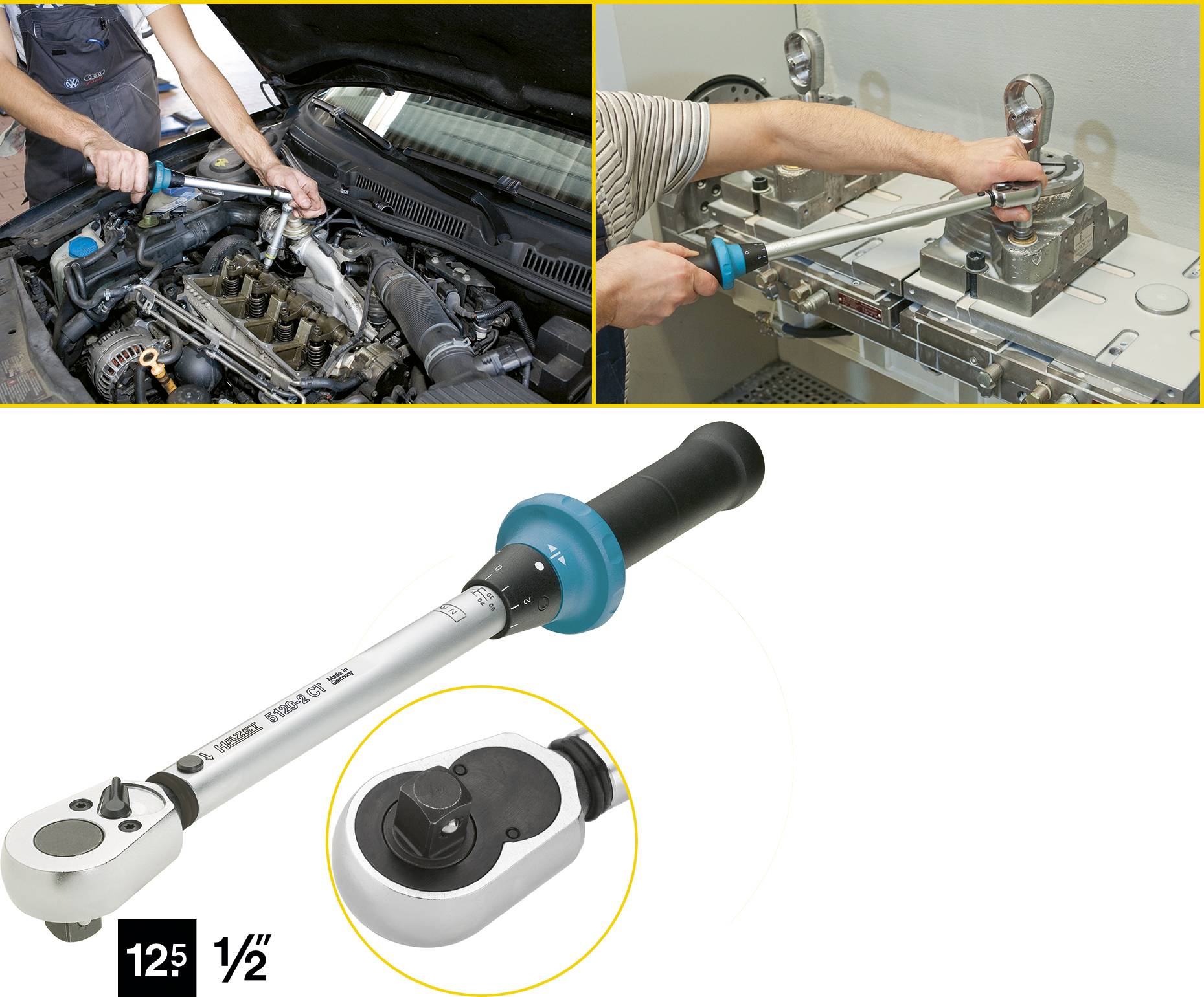 · Genauigkeit ± 4% vom Skalenwert (in Betätigungsrichtung). (5107-2 CT ± 6% Auslöse-Genauigkeit). · Sicher:. - Haptisch (Kurzwegauslösung). - Akustisch (Knickelement). · Einstellen des gewünschten Drehmoment-Wertes schnell und sicher durch Drehen des Griffes. · Anwenderfreundliche Umschaltknarre. · Servicefreundlich (Knarren-Reparatur-Sätze erhältlich). · Integrierter Umschalthebel mit Freilauffunktionverringert Verletzungsgefahr und Funktionsstörungen. · Exakt - Feine Skaleneinteilung. · Sichere Verriegelung des Handgriffes durch Drehkranz -keine Klemmgefahr!. · Ergonomisch. · Mit Seriennummer und Zertifikat. . · Solide und preisbewußt. · Millionenfach bewährt. · Unverzichtbar für kontrollierten Drehmoment-Anzug. · Vierkant nach DIN 3120, ISO 1174-1, DIN EN ISO 6789:2003 (D). Made In Germany. · Extra kurze Ausführung - besonders kompakt. · Lieferung in stabilem Hexa-Drehpack.