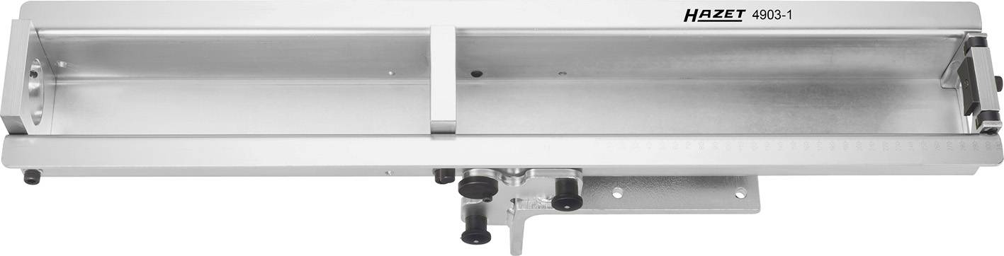 Mehr Sicherheit - dank lastfreier Montage!. · Universell einsetzbar für fast alle Feder-/ Stoßdämpferbeine. · Lastfreie Demontage/ Montage bei komplett entlastetem Dämpfer. Neuartiges Aufnahme- und Montagekonzept. · Schwenkbar in waagerechte oder senkrechte Arbeitsposition. HAZET-Empfehlung ergonomische Arbeitshöhe: Senkrecht einstellen, waagerecht betätigen. · Beschädigung an Dämpfern und Kopfplatten ausgeschlossen. (keine Überlastungsmöglichkeit). · Einfache, arretier- und fixierbare Federbeinaufnahme. Hohe Sicherheit. · Durchgängig sichere Aufnahme der Kopfplatten. · Gewindebeschädigung der Kolbenstange ausgeschlossen. · Permanente Fixierung der Feder während gesamten Arbeitsvorgangs. Investitions-Sicherheit - Nutzung vorhandener Komponenten SYSTEM 4900. · Vorhandene Grundgeräte 4900-2 A und alle Spannplatten des Systems 4900 einsetzbar. · Einsatz zukünftiger Anwendungen gesichert. Dokumentationsfähigkeit durch Skalierung. · Deutliche Zeitersparnis im Wiederholungsfall. · Feste Fixierung erübrigt Neueinstellung bei gleichem Federbein (links/ rechts). 4 Schritte zum Erfolg:. · Federbein auf Spannteller über Greifer und Bremsen fixieren. · Feder mit Universal-Spannplatte greifen. · Spanner mit Umschaltknarre oder Akku-Schrauber zusammenfahren. · Dämpfer lastfrei demontieren und neuen montieren. (danach umgekehrte Reihenfolge). Made In Germany. · Perfekte Grundausrüstung, wenn Federspanner-Grundgerät 4900-2 A bereits vorhanden.