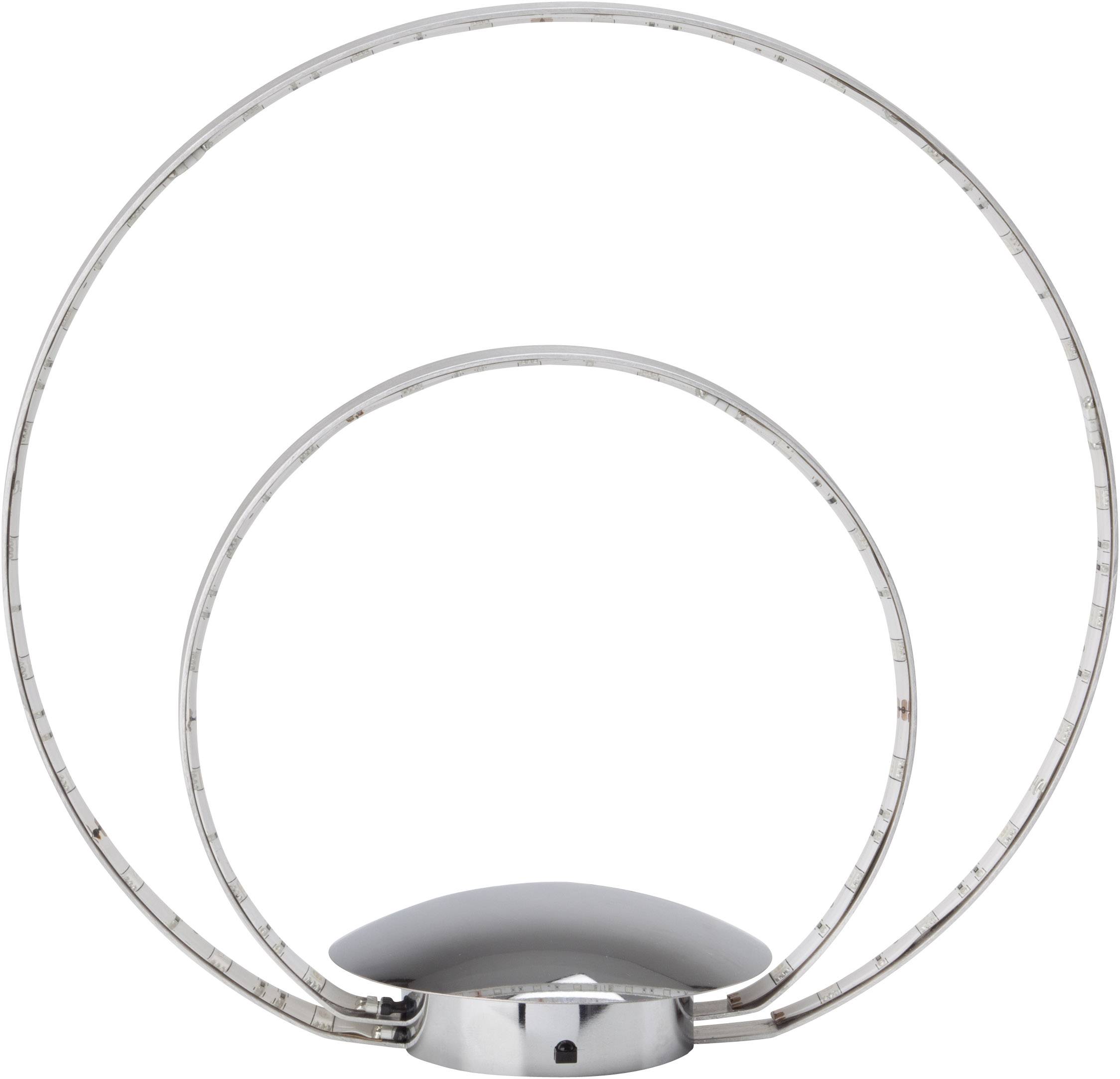 Die dekorative Tischleuchte Melina bereichert Wohn- und Schlafräume und eignet sich sowohl als Beleuchtungslösung für dunkle Ecken als auch als Dekoelement.Die integrierten LEDs zeichnen sich bei hoher Lichtleistung durch einen geringen Energieverbrauch aus. Zum Lieferumfang dieser Leuchte gehört auch eine Fernbedienung. Damit lassen sich die zahlreichen Funktionen steuern. Die Helligkeit kann mit ihrer Hilfe stufenlos verändert werden. Diese Möglichkeit erweist sich in vielen Fällen als praktisch und ist auch gerade deshalb sehr nützlich, weil die Lichtausbeute auf höchster Leistungsstufe sehr hoch ist. Im Lieferumfang sind auch die Batterien zum Betrieb der Fernbedienung enthalten. Effektvolles Licht ermöglicht das RGB-Hauptlicht. Lassen Sie Ihr Zuhause je nach Stimmung in verschiedenen Farbtönen erstrahlen.