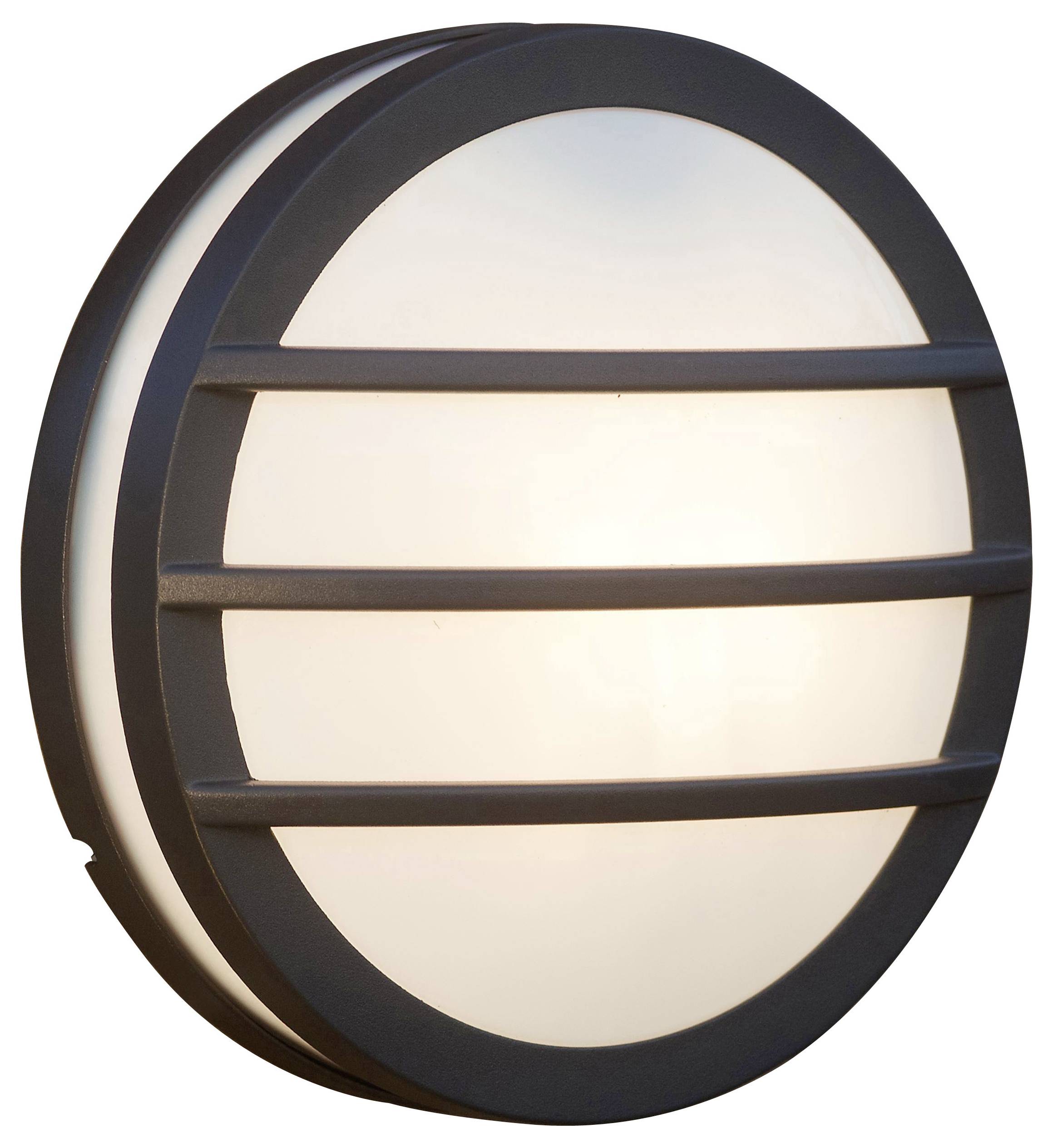 Mit ihrem modernen Design sowie ihrem gleichmäßigen, blendfreiem Licht wird sie schnell zum neuen Hingucker. Der opale Einsatz aus Polycarbonat wird von einem gitterartigen, runden Aluminiumguss gesäumt. Durch ihre runde Form in Anthrazit passt die Wandleuchte zu vielen Hausfassade.