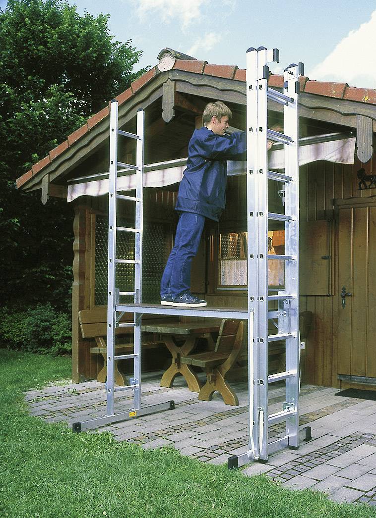 Passend zur 3-teiligen Mehrzweckleiter. Stabile Stahlunterkonstruktion, rutschfeste Siebdruckplatte, Einhängehaken mit Sicherung. Lieferung erfolgt zerlegt, Montageanleitung liegt bei.