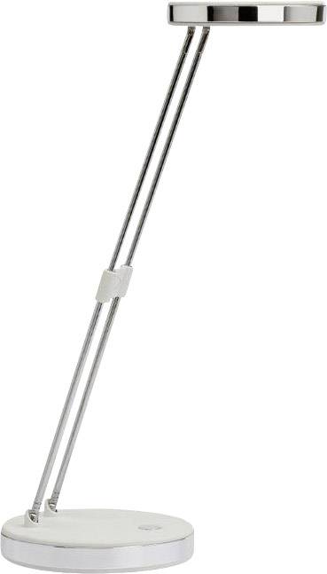 Verchromter Arm · Beschwerungseinlage · Schreibtischschonende Unterlage · Kippschalter.