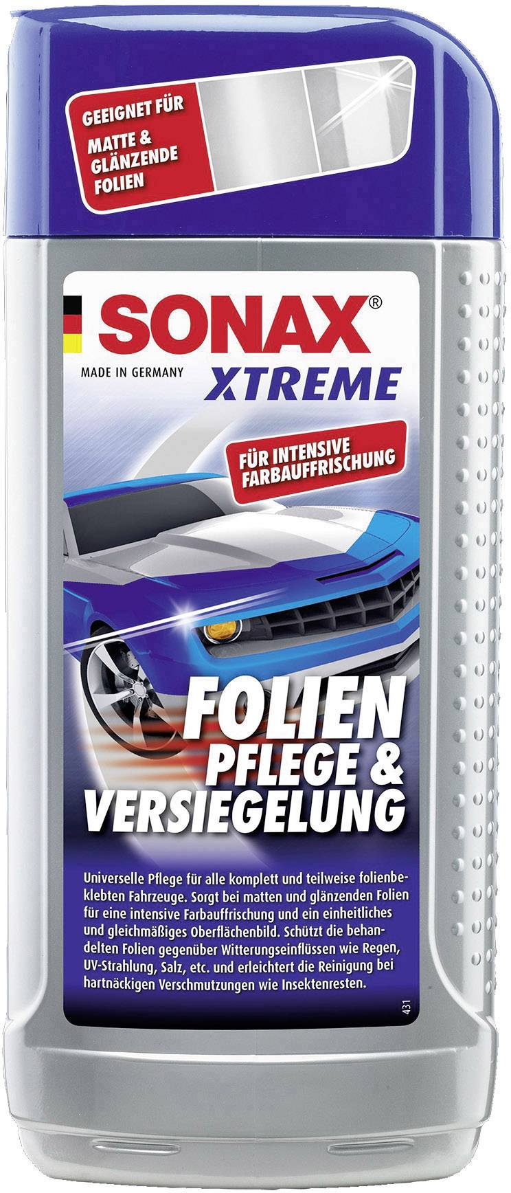 Universelle Pflege für alle komplett oder teilweise folienbeklebten Fahrzeuge. Schützt und versiegelt die behandelten Folien gegenüber Witterungseinflüssen wie Regen, Salz, UV-Strahlung etc. Für mehr Farbtiefe sowie ein einheitliches und gleichmäßiges Oberflächenbild. Erleichtert die Reinigung bei hartnäckigen Verschmutzungen wie z.B. Insektenresten. Für matte und glänzende Folien: ideal nach der Verwendung des SONAX XTREME FolienReinigers.
