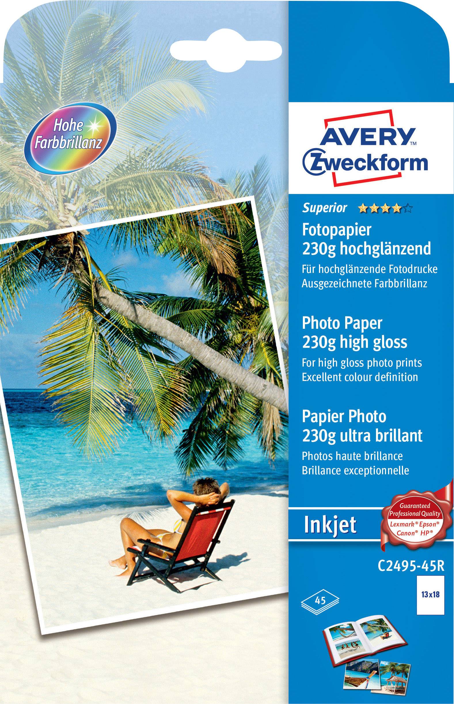 Avery-Zweckform Superior Photo Paper Inkjet C2495-45R Fotopapier 13 x 18cm 230 g/m² 45 Blatt Hochglänzend