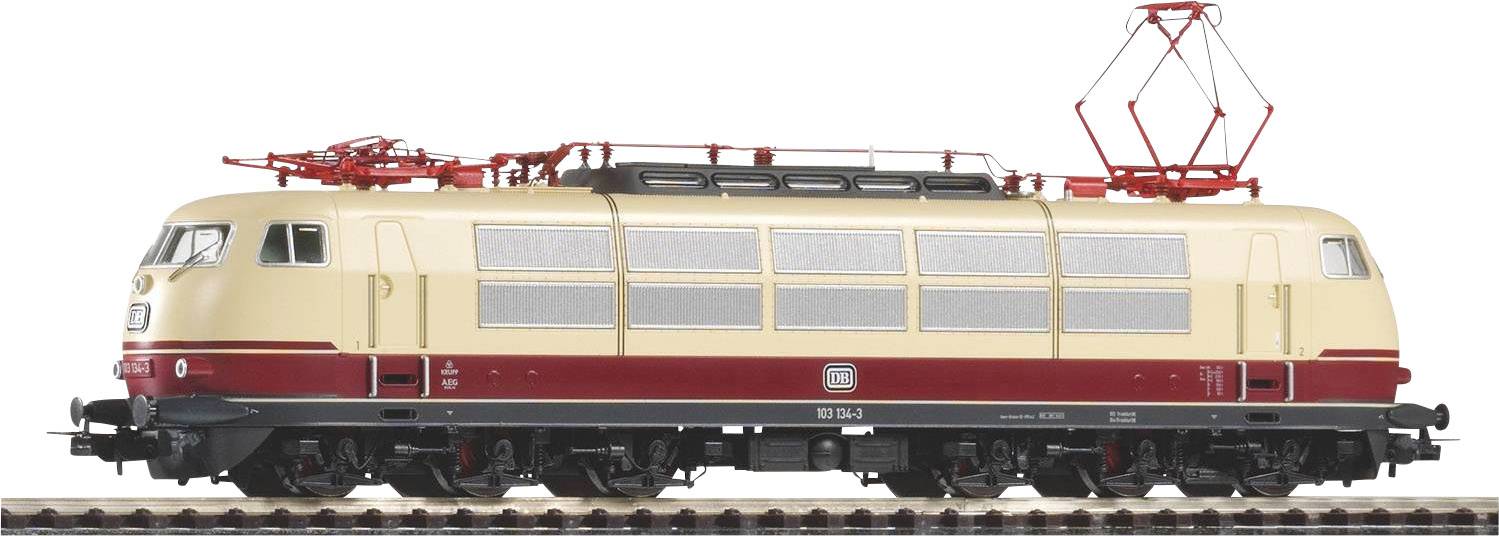 Formneuheit der Kultlok für den TEE und IC Dienst der DB in der Ursprungsausführung mit Schürze und Scherenpantos, rot/beige Lackierung in der kurzen Ausführung. Das Modell folgt mit seiner Konstruktion der bewährten PIKO Antriebsausführung. Der solide fünfpolige schräg genutete PIKO Motor sorgt mit zwei präzise ausgewuchteten Schwungmassen für ausgezeichnete Laufeigenschaften. Die Zugkraft der über vier Achsen angetriebenen Lok wird über zwei Haftreifen verstärkt, die in diagonaler Anordnung auf den innen laufenden Achsen beider Drehgestelle sitzen. Die Beleuchtung der Stirn- bzw. Schlusslampen erfolgt über LEDs, deren Rot bzw. Weiß mit der Fahrtrichtung wechselt. Die Führerstandsbeleutung und das Schlusslicht kann digital geschaltet werden.