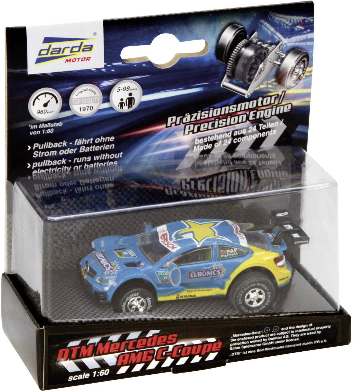 Da geht DTM-Fans und allen Rennfreaks das Herz auf: DARDA Mercedes-Benz C-Coupé DTM Paffett. Die Powermaschine mit individuell designtem Kunststoffgehäuse kommt so schnittig daher wie das Original. Geschmückt mit tollen DTM Racing Dekor! Hochgeschwindigkeiten garantiert!