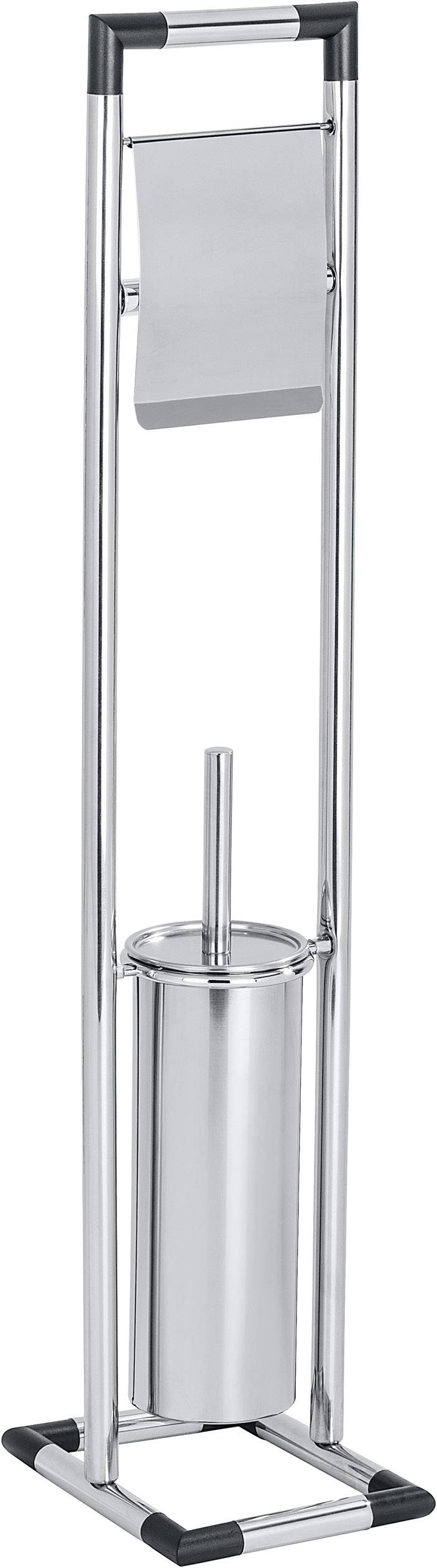 Die Stand WC-Garnitur Lonigo aus hochwertigem, rostfreiem Edelstahl kombiniert mit schwarzen Kunststoffelementen setzt dekorative Design-Akzente im Badezimmer.
