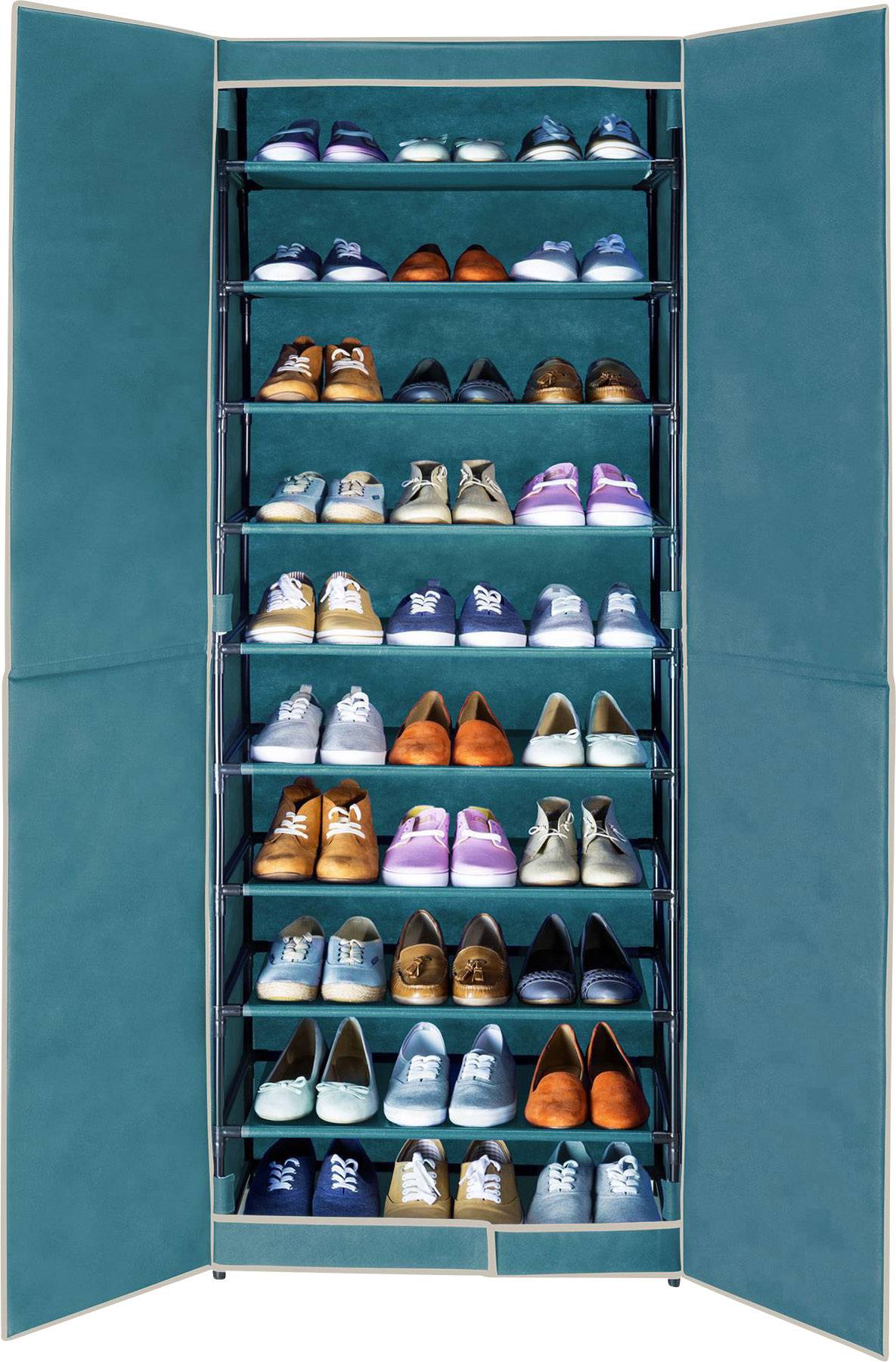 Der Schuhschrank überzeugt durch einen stabilen Metallrahmen. Der schöne Schrank im trendigen Petrol ist aus Faserstoff gefertigt und dementsprechend atmungsaktiv.