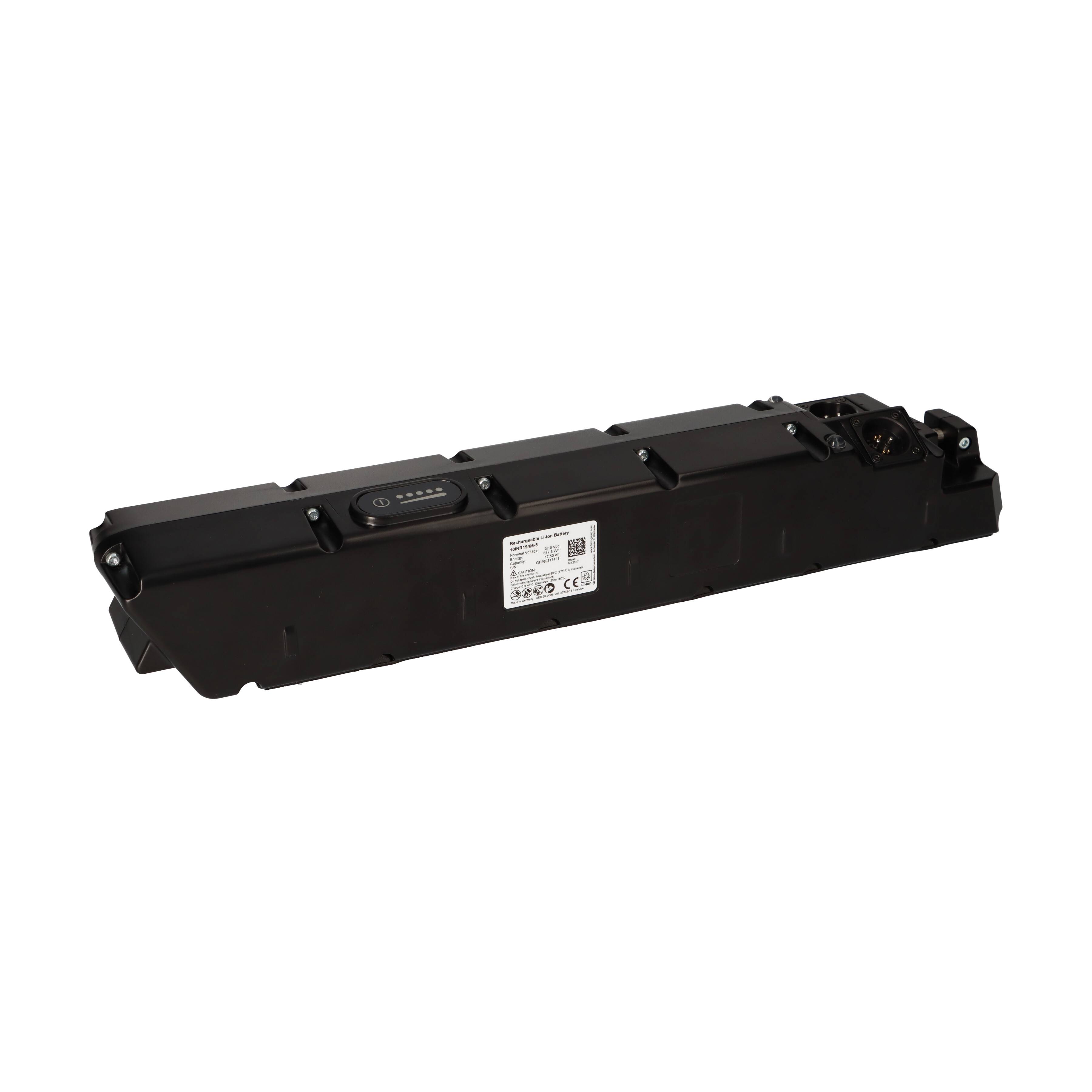 Mit einer Kapazität von 17,25 Ah bei einer Spannung von 36,3 Volt entspricht dies 647,5 Wh (Wattstunden). Der Akku ist schwarz und verfügt über eine Wake Funktion. Die Kommunikation erfolgt über Can Bus und der Ladeanschluss ist ein Rosenberger Anschluss.
