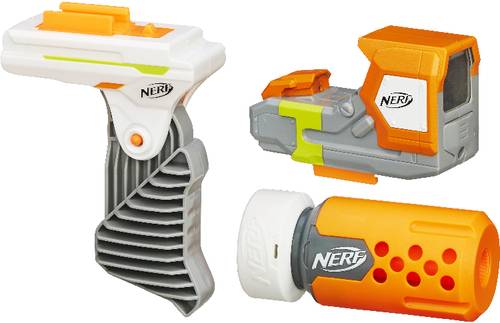 Für geheime Operationen bestens gerüstet! Das Modulus Set ''''Geheimoperation'''' sollte bei der Optimierung des NERF Modulus Blasters (separat erhältlich) nicht fehlen. Der hier enthaltene Lauf ist speziell für kurze Distanzschüsse mit dem Modulus ausgelegt. Mit dem klappbaren Faltgriff stabilisiert man den Blaster schnell und unerkannt mit der zweiten Hand, denn er lässt sich mit einer schnellen Handbewegung ruck, zuck in Position bringen. Das Highlight dieses Zubehör-Sets ist die spezielle Zielvorrichtung: Das batteriebetriebene Rotpunktvisier sorgt für höchste Treffsicherheit und präzises Anvisieren.