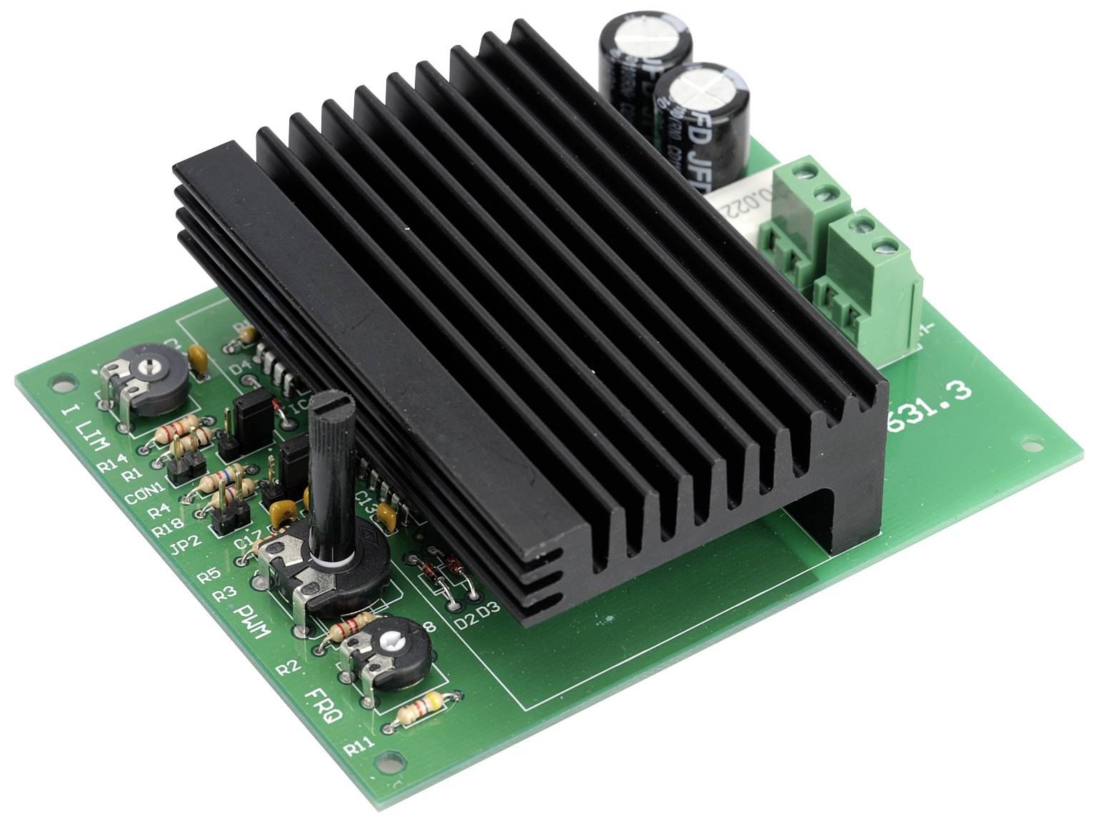 Dieser Drehzahlsteller wurde speziell für Niederspannungs-Elektromotoren entwickelt. Die Haupteinsatzgebiete sind stufenlose Drehzahlregelung von Gleichstrombohrmaschinen, Modellautos, Scheibenwischermotoren sowie für Elektrowerkzeuge. Aufgrund der Puls-Breitensteuerung, die mit einer einstellbaren Frequenz zwischen