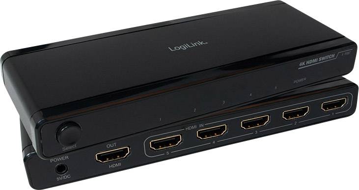 LogiLink HD0013 5 Port HDMI-Switch mit Fernbedienung, Ultra HD-fähig 3840 x 2160 Pixel