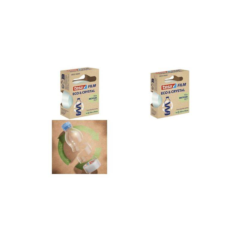 tesa Film ECO & CRYSTAL, transparent, 19 mm x 33 m Trägerfolie aus 90% wiederaufbereiteten PET-Flaschen,