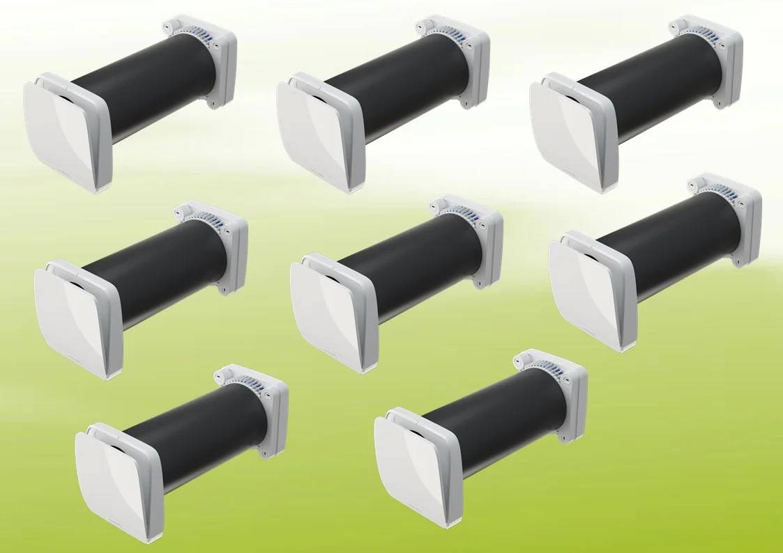 - Flexible Installation: Kompaktes Design, keine Kondenswasserableitung notwendig und einfache Anpassung an Wandstärken von 250 mm bis 500 mm.