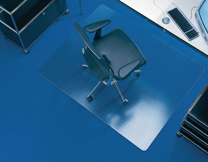 für weiche Böden · Stärke 2,1 mm · umweltfreundlich aus PET-Kunststoff · kratzunempfindliche, strukturierte Oberfläche · die optisch klare, kristalline Struktur überzeugt mit hoher Lichtdurchlässigkeit und glasklarer Transparenz · erstklassige chemische Beständigkeit gegen Säuren, div. Lösungsmittel, Alkohole, Salze, Weichmacher, Öle, Fette und Treibstoffe · uneingeschränkte Bewegungsfreiheit der Stuhlrollen auf Teppichböden beigleichzeitiger Rutschfestigkeit der Matte · mit stumpfen Ankernoppen , sie verhindern das Verrutschen, indem sie in den Teppich greifen, ohne ihn zu beschädigen