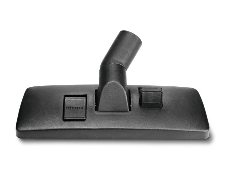 umschaltbar, mit Edelstahl-Gleitfläche und umlaufenden Borsten, einsetzbar für harte Böden und textile Bodenbeläge.