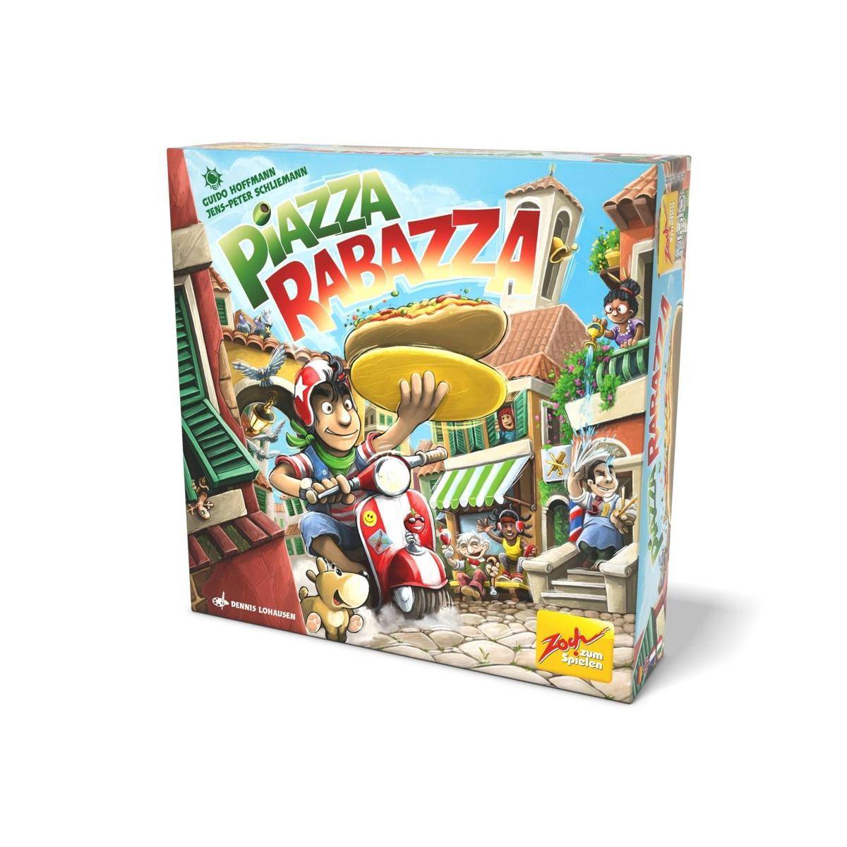 „Piazza Rabazza" ist ein aktionsgeladener Spielspaß, der nicht nur bei Kindern Geschick, Konzentration, Schnelligkeit und schlaues Planen herausfordert. Nur Pizzaessen ist ab und zu noch schöner …