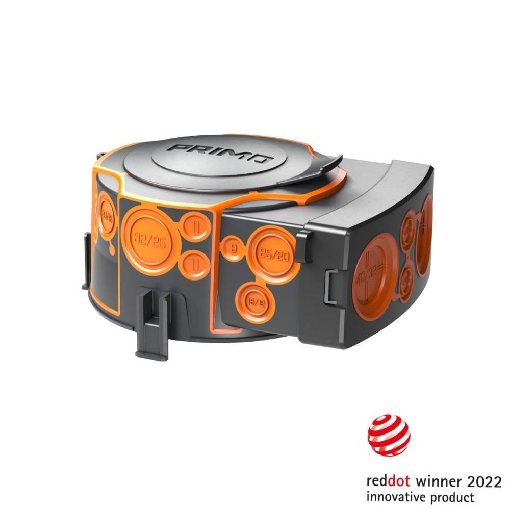Mit dem XL 150 Einbaugehäuse können Leuchten, Lautsprecher sowie weitere Einbaugeräte schnell und einfach montiert werden. Das absolut betondichte Gehäuse bietet mit einem Durchmesser von 160 mm Platz für bis zu 25 Leitungen und Rohre von M9 bis M40. Darunter befinden sich 14 Kombi-Einführungen für maximale Flexibilität. Die Membrantechnik ermöglicht eine werkzeuglose Einführung und dank dem integrierten Rohrgrip sind die Rohre sicher zugentlastet. Durch den Rohrstopper entfällt das nachträgliche Abschneiden der Rohre im Gehäuse, wodurch zeitaufwändige Nacharbeiten der Vergangenheit angehören. Der abnehmbare Deckel ermöglicht das Einziehen der Kabel und Leitungen in das Gehäuse bereits vor der Betonage. Der integrierte Anschlussraum eignet sich z.B. für elektronische Bauteile. Aufsteckbare Flügel zur Befestigung an der Stahlarmierung sowie ein Universaltrafotunnel für zusätzlichen Anschlussraum sind separat erhältlich.