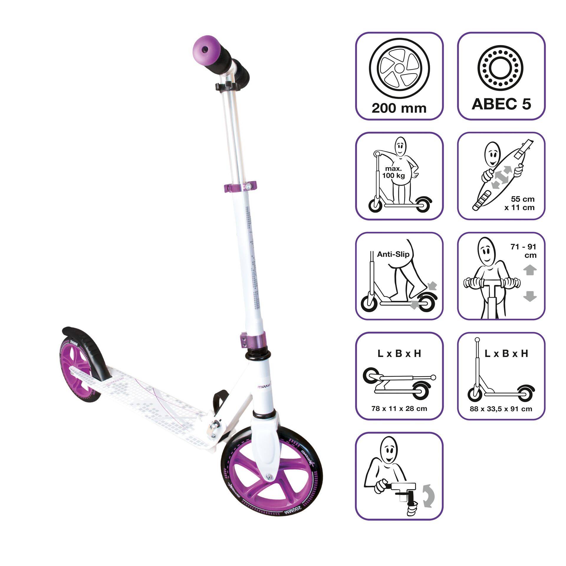 Fahrkomfort: Mit einem Rollendurchmesser von 200 mm und einem ABEC 5 Kugellager sind Sie immer komfortabel und schnell unterwegs.