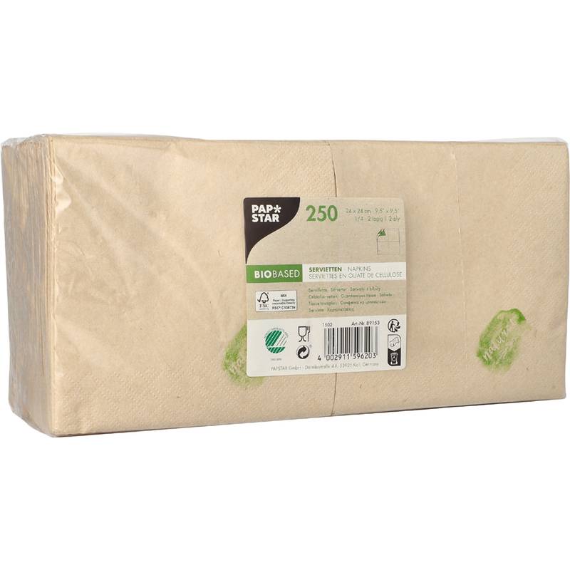 PAPSTAR Cocktail-Servietten, 240 x 240 mm, 2-lagig, natur 1/4 Falz, Tissue (50% ungebleicht)