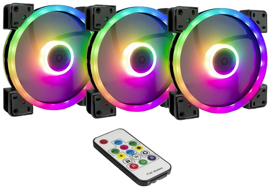 Die drei 4Pin PWM 140mm RGB-Lüfter v1200U/minon Argus bieten eine tolle Beleuchtung für Ihr PC-Gehäuse und bieten mit der beiliegenden Funk-Fernbedienung und der Steuerungseinheit über 300 verschiedene Effekte und Modi. Wem das nicht ausreicht, kann zudem über den integrierten 5V RGB-Header (adressierbare RGB-LEDs), alle RGB-LEDs synchron über das Mainboard verwalten und steuern.