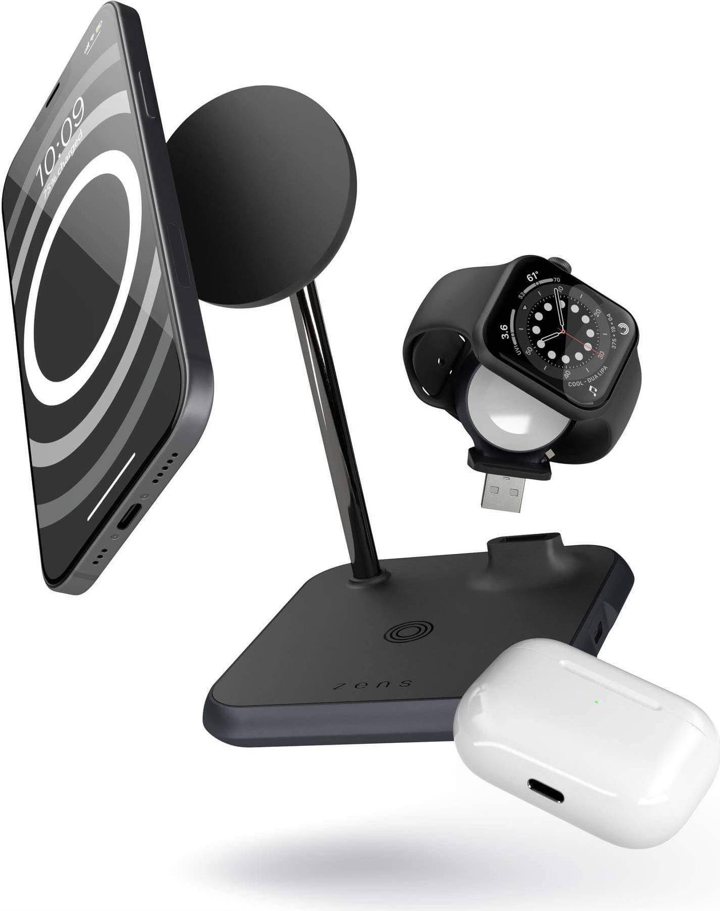 Zens Aluminium Series 4 in 1 Magnetic Wireless Charger + Watch | 1x 7,5W | Qi | schwarz | ZEDC20B/00 (ZEDC20B/00)