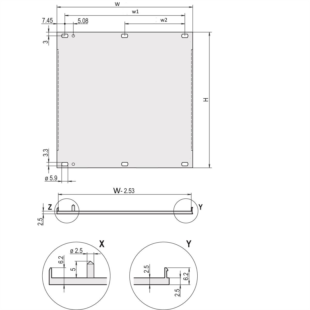 U-Profil Frontplatte, Nachrüstbare Schirmung, 6 HE, 5 TE