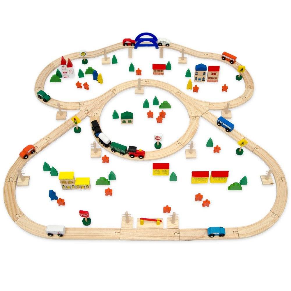 Holz-Eisenbahn mit 130 Teilen von eyepower | Spielzeug Set für Mädchen und Jungs