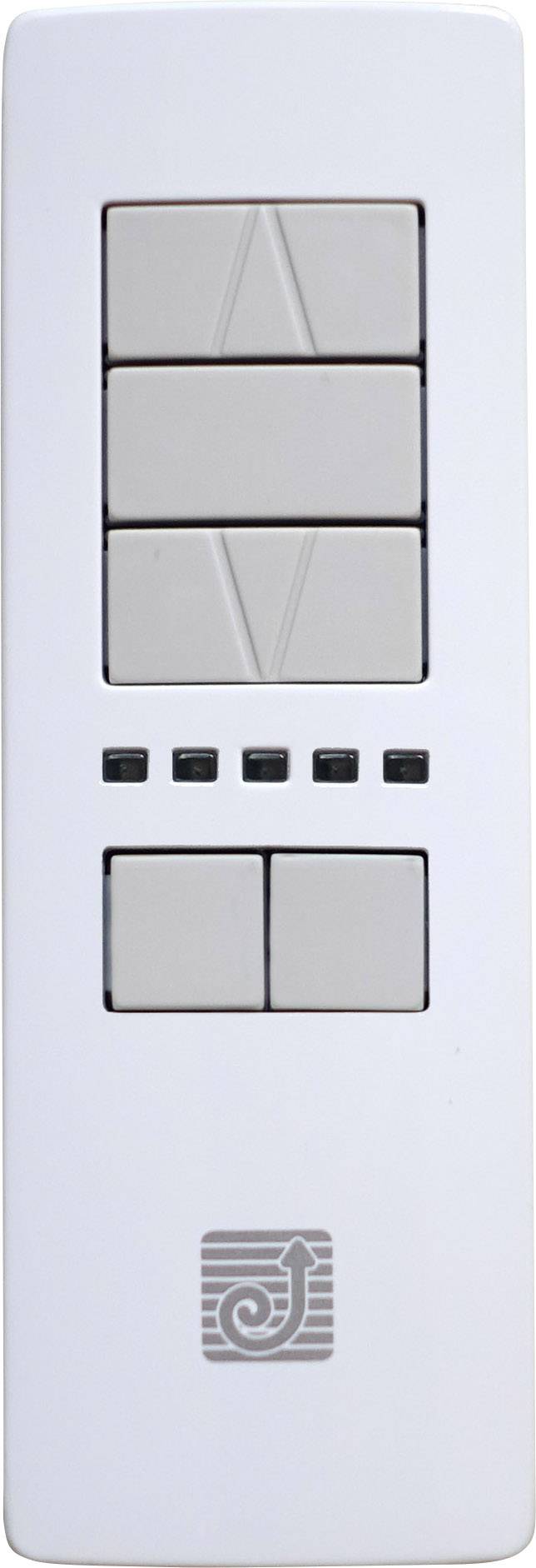 4-Kanal Funkhandsender mit Universal-Befestigungskonsole als Wandhalterung oder Plexi-Ständer. Die Gehäusefarbe ist reinweiß.