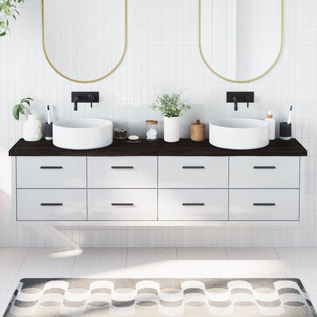 Behandelte Oberfläche: Die Waschtischplatte wurde mit dunkler Lackierung behandelt, sodass sie sofort einsatzbereit ist, da eine zusätzliche Beschichtung nicht erforderlich ist.