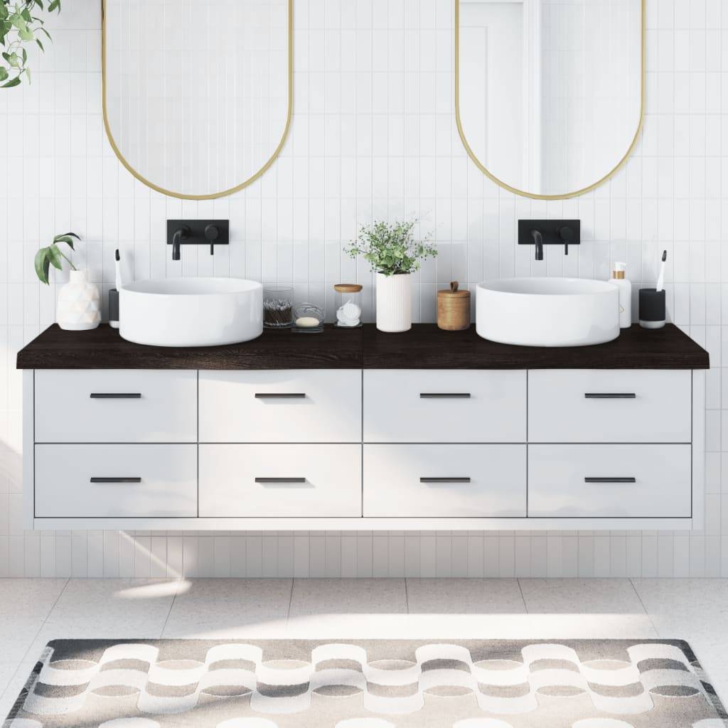 Behandelte Oberfläche: Die Waschtischplatte wurde mit dunkler Lackierung behandelt, sodass sie sofort einsatzbereit ist, da eine zusätzliche Beschichtung nicht erforderlich ist.
