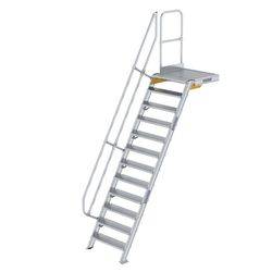 Treppe mit Plattform 60° Stufenbreite 800 mm 12 Stufen Aluminium geriffelt