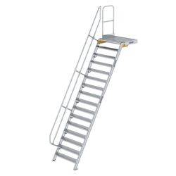 Treppe mit Plattform 60° Stufenbreite 1000 mm 16 Stufen Aluminium geriffelt